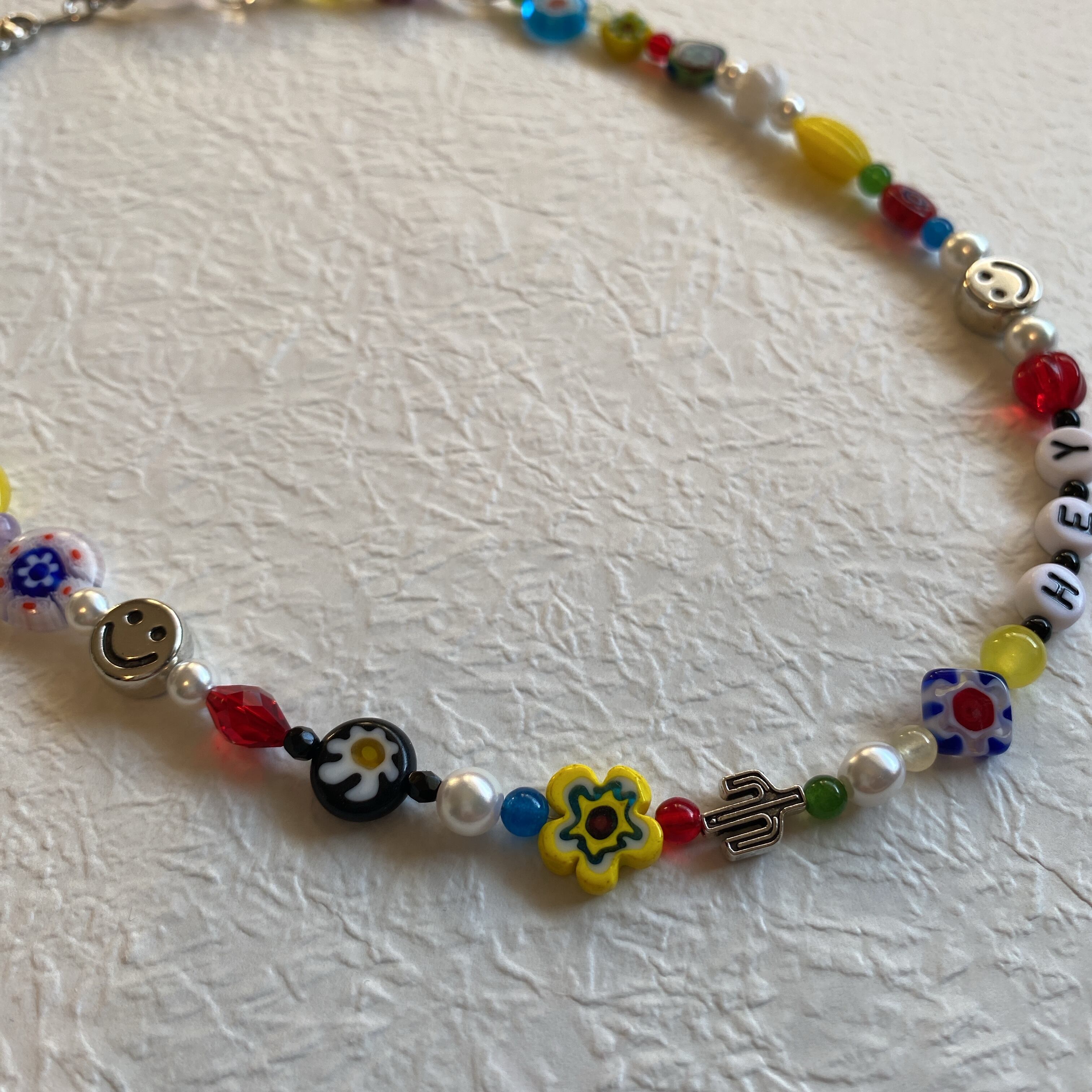 ○パールビーズとミルフォオリ、カラフルなビーズにシルバーパーツを使ったネックレスです☺︎