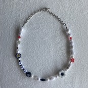 ○色々な形のパールビーズや大粒のパールビーズ、パーツを使ったネックレスです♪